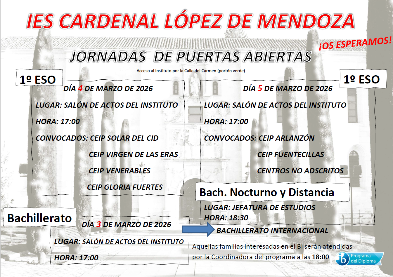 INFORMACIÓN IMPORTANTE BACHILLERATO NOCTURNO - BACHILLERATO A DISTANCIA CALENDARIO DE EXÁMENES 2ª EVALUACIÓN CARACTERÍSTICAS BÁSICAS DE AMBOS BACHILLERATOS (Pincha para descargar presentación) PLAZO DE MATRÍCULA BACHILLERATO A DISTANCIA: ¡FINALIZADO! |