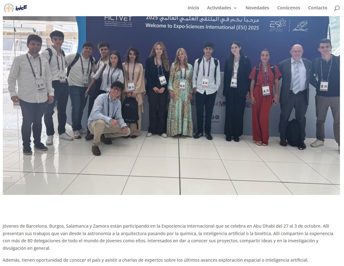 Nuestras alumnas Aldara Castelo y Lucía Martín participan en la Expociencia Internacional INIICE que se celebra en Abu Dhabi